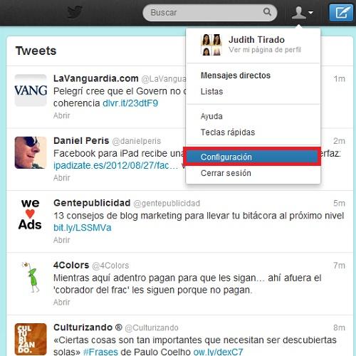 Acude al icono situado en la parte superior de la pantalla y, seguidamente, haz click en 'Configuración'.