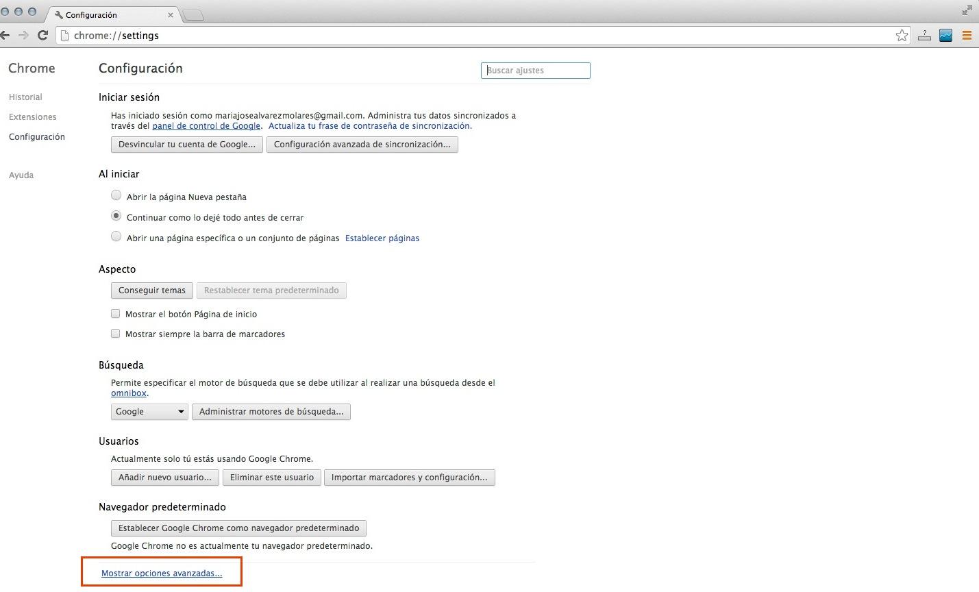 En la página que se abrirá, ve abajo del todo, y despliega "Configuración avanzada".