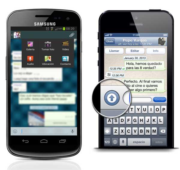 Si tu móvil es de iOs es mucho más restrictivo, solo deja escoger una grabadora de sonido, pero si tienes instalado un programa de gestión de descargas como Filemaster podrás seleccionar archivos, abrir con y enviar a través de WhatsApp. Si en iPhone quieres enviar una foto, en este artículo de unComo te contamos cómo enviar una fotografía por WhatsApp en iPhone.