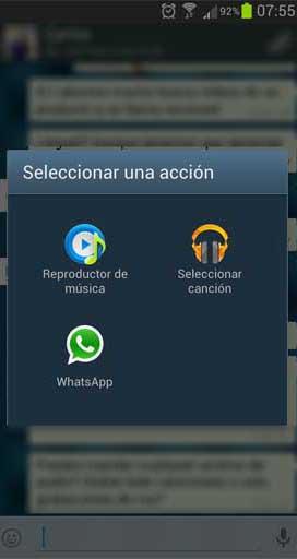 No es necesario seguir este camino para enviar una canción o cualquier archivo de audio por WhatsApp, dependiendo del sistema operativo disponible las opciones pueden variar. Puedes navegar por tu galería de archivos de audio, elegir una canción y compartir, cuando pulsas suelen salir diversas vías para enviar el archivo, Skype, Telegram, Twitter, Facebook, Google Plus, WhatsApp, Hotmail, entre otras.