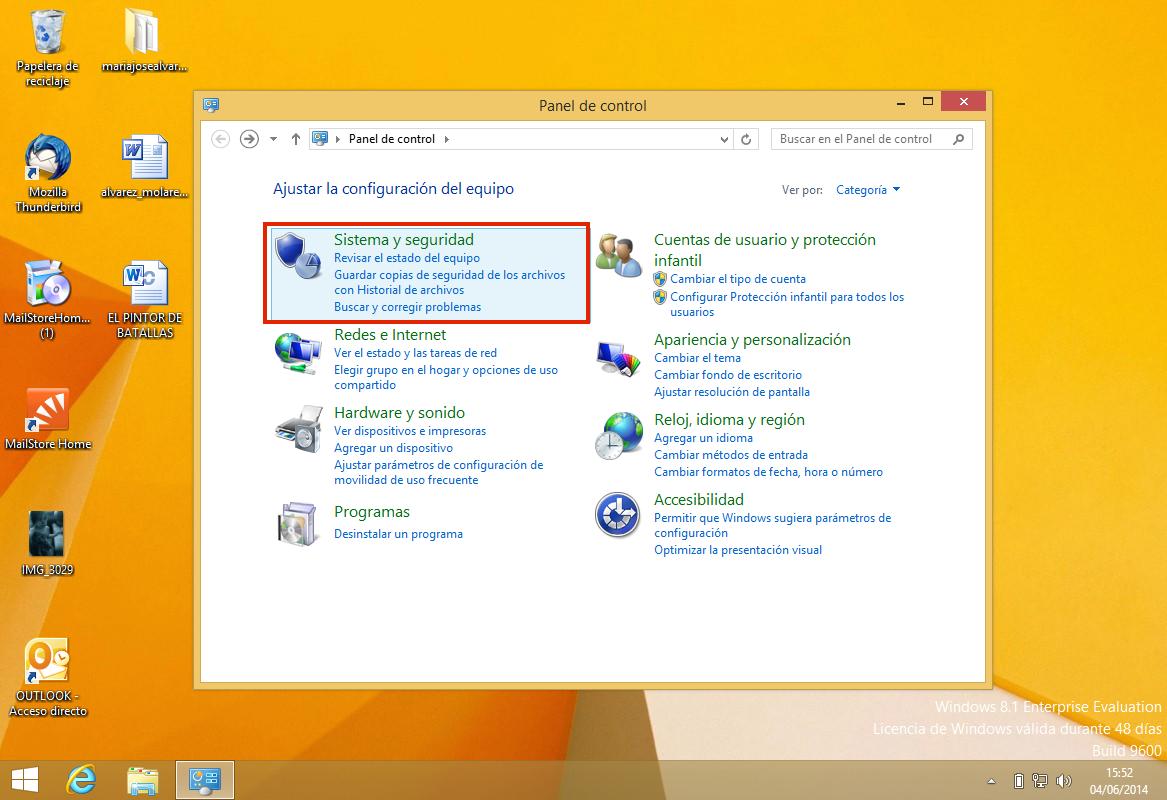 Una vez que ya estés en el Panel de control, entra en el apartado de "Sistema y seguridad".