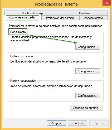 También puedes ganar velocidad en Windows trabajando con su configuración. Para ello, simplemente, debes acudir a Propiedades del Sistema y, después, a Opciones Avanzadas.