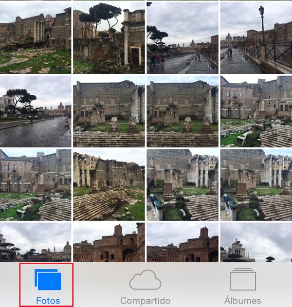 Lo primero que tienes que hacer es presionar sobre el icono 'Fotos' de tu iPhone para poder acceder a todas tus fotografías. Una vez dentro, en la barra inferior presiona sobre 'Fotos' y, automáticamente, te aparecerán todas las fotografías que has tomado con tu dispositivo móvil y aquellas que has guardado en 'Carrete'.