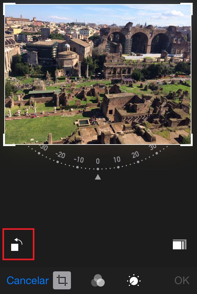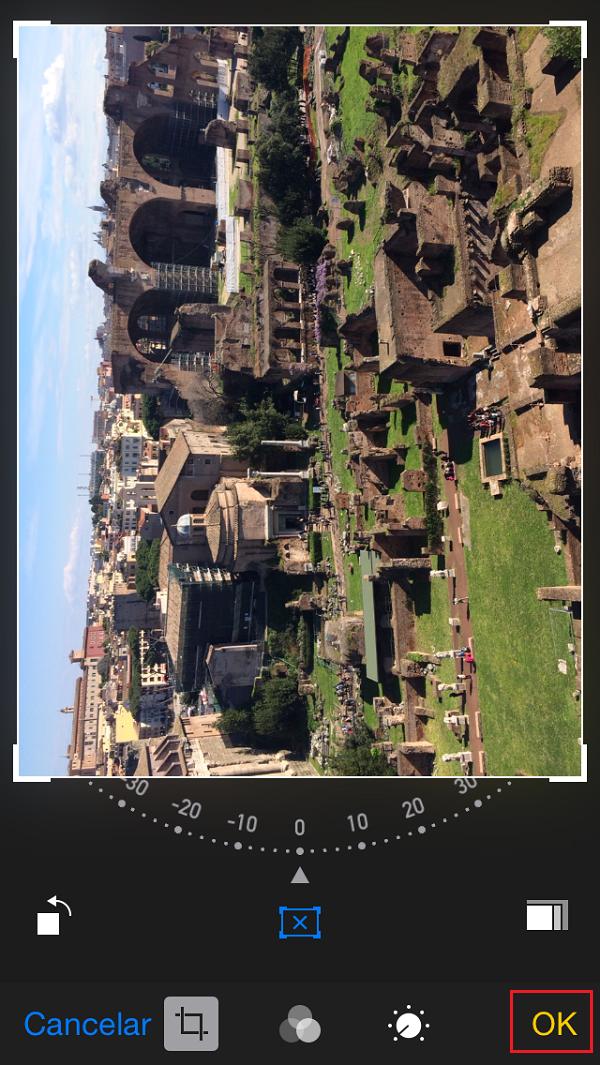 Al pulsar sobre el incono de rotar, la fotografía girará de manera automática en 90 grados, solo tienes que volver a presionar el icono para que siga rotando y se coloque en la posición que deseas. ¡Así de sencillo! Una vez hayas girado la foto, deberás pulsar sobre 'OK' y la imagen se guardará en el 'Carrete' con las modificaciones que hayas llevado a cabo.