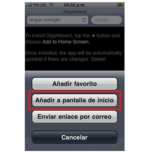 Un nuevo menú desplegable se abrirá desde la zona inferior; en éste, pulsa sobre 'Añadir a pantalla de inicio'.