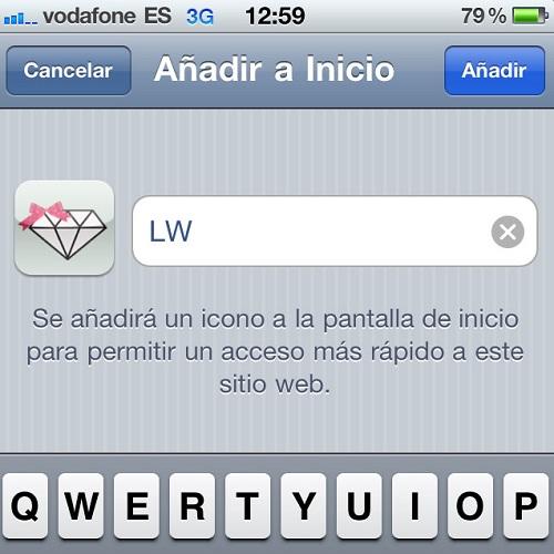 Escribe ahora un nombre para el favorito; éste se añadirá en forma de icono en la pantalla de inicio para permitir un acceso más rápido al sitio web.