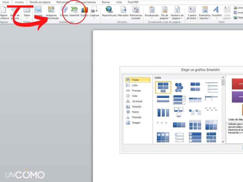 Si buscas un programa parda hacer un árbol genealógico que sea intuitivo y fácil de utilizar, nada de complicados programas de diseño, lo mejor será decantarte por Word. Para crear tu plantilla de árbol genealógico en este programa, abre Word y, a continuación, dirígete a Insertar>SmartArt.