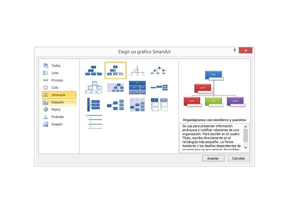 Aparecerá entonces un nuevo menú específico para SmartArt. Ahí tendrás que escoger la opción "Jerarquía".