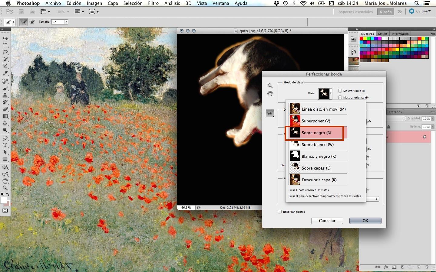 En la nueva ventana que te aparecerá, marca la selección "Sobre negro" y aparta hacia un lado la misma, sin cerrarla, para poder manipular la imagen. Simplemente, lo que tienes que hacer es ir pasando el cursor por el borde del objeto y, automáticamente, se mejorará la selección. Cuando termines, presiona en "OK".
