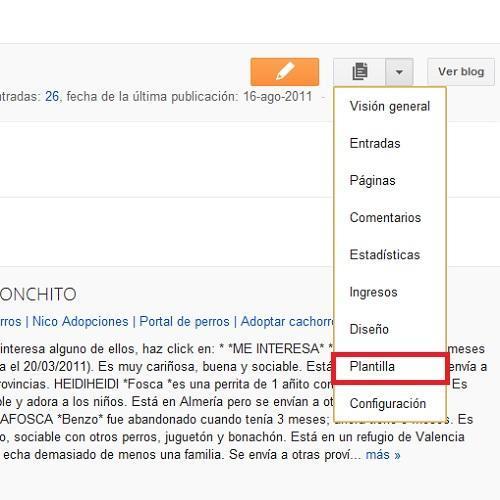 Acude al menú desplegable de tu menú de Blogger y haz click en 'Plantilla'.