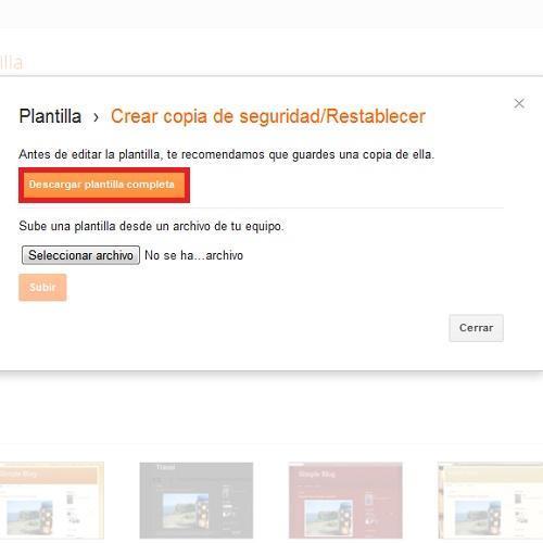 Haz click en 'Descargar plantilla completa' en la ventana emergente que te aparecerá de manera automática.De esta manera, si alguna vez cometes un pequeño error editando los códigos de tu blog o padeces un hackeo, sólo tendrás que volver a subir la plantilla descargada para recuperar tu blog.
