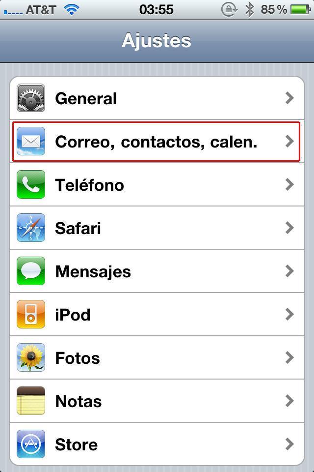 Para empezar debes entrar en 'Ajustes' y seleccionar la opción 'Correo, contactos, calendarios'.