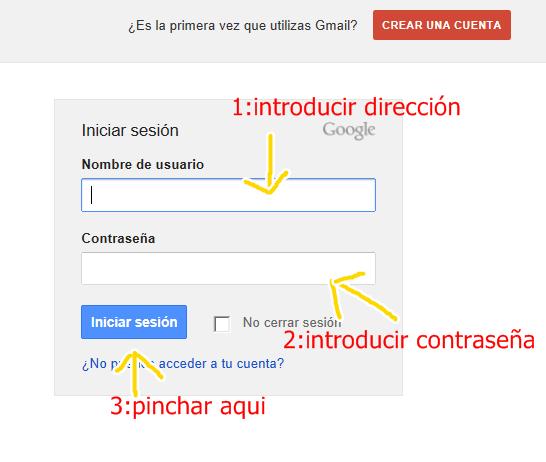 Para poder iniciar sesión en Gmail, es indispensable que antes poseamos una cuenta o dirección de Gmail. Para ello podemos poner en nuestro navegador la siguiente direción: mail.google.com o basta que en nuestro buscador (google.es por ejemplo) marquemos la siguiente combinación de palabras: crear cuenta gmail y pinchar sobre alguna de las opciones que nos salga. Yo particularmente prefiero la primera opción ya que nos lleva a donde queremos ir directamente.