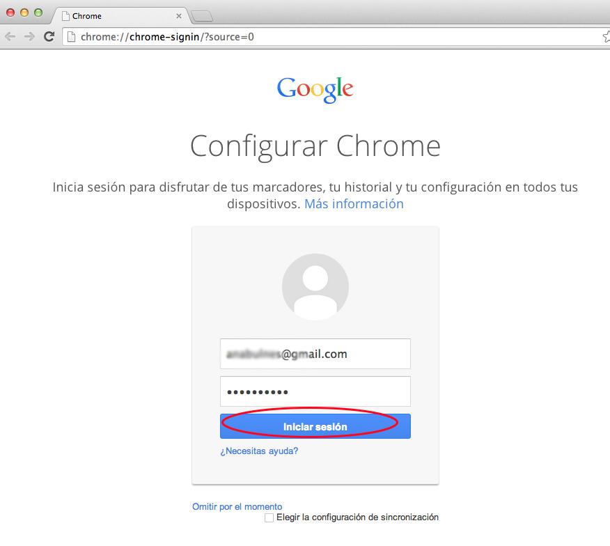 Verás una pantalla para iniciar sesión en Chrome. Introduce los datos de tu cuenta de Google y haz clic en "Iniciar sesión".