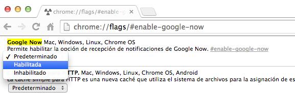 Introduce en la barra de direcciones la siguiente URL: chrome://flags/#enable-google-now. Aparecerá una lista de opciones y configuraciones para Chrome Canary. En la primera, la que habla de Google Now, despliega el menú y marca "Habilitada" y reinicia el navegador.