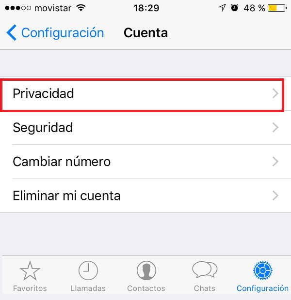 Para lograr tu objetivo de no aparecer en línea en esta aplicación cuando te conectas, tienes que entrar en la pestaña de Privacidad. Al entrar en esta opción, verás que aparecen varias opciones más: