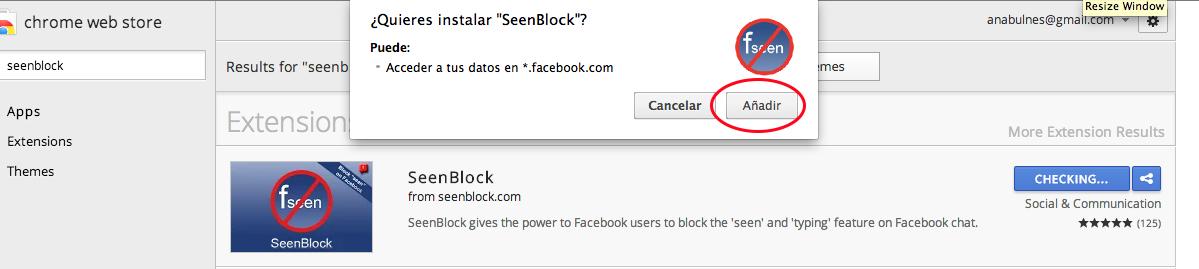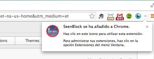 De la lista de resultados, escoge la primera extensión, SeenBlock, aunque las otras valen también para lo mismo, por lo que puedes probarlas si esta no te convence. Haz click en el botón azul en el que dice +FREE para instalarla.