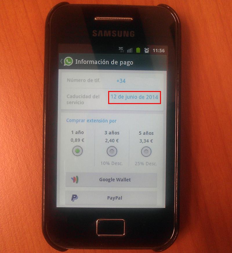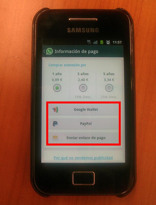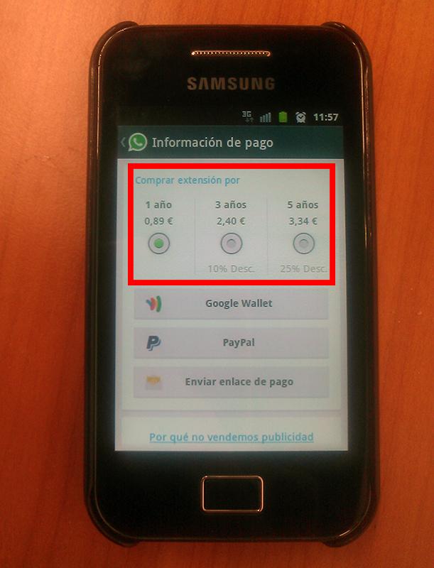 Si eres uno de ellos y, a pesar de haber pagado en el momento de la descarga de Whatsapp, debes renovar tu servicio, deberás elegir por cuánto tiempo quieres comprar la aplicación: