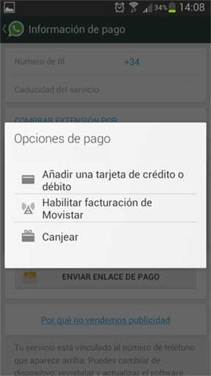 - Pagarlo a través de tu factura telefónica de Movistar. Cabe destacar que para pagar Whatsapp con este método deberás conectarte a través de la red móvil (3G/4G) y no mediante Wi-Fi.