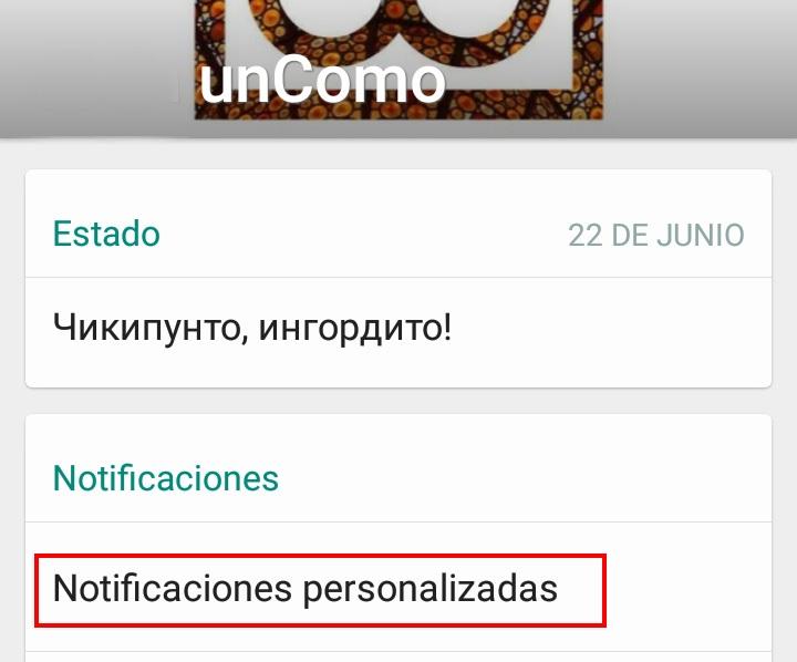 Una vez que estés dentro de la información de contacto, verás directamente la opción de personalizar las notificaciones, de modo que deberás hacer clic sobre: 'Notificaciones personalizadas'.
