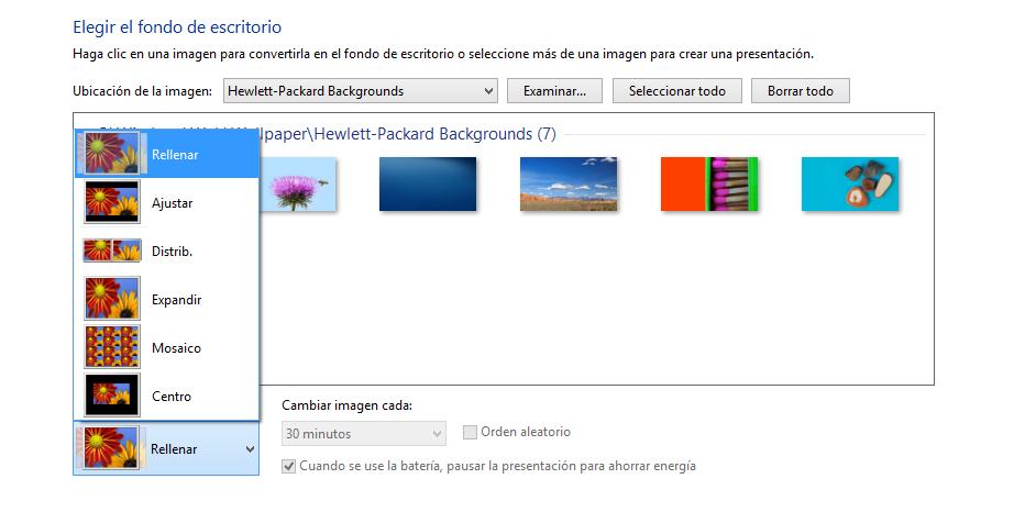 Además, desde este Panel de Control también podrás determinar el modo en el que quieres que aparezcan las imágenes pues puedes adaptarlas para ocupen todo el fondo de tu escritorio o puedes hacer un mosaico con ellas, centrarlas, etcétera. Escoge la opción que más te guste y tu ordenador se mostrará con tu elección.