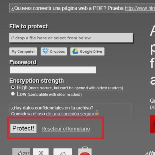 Haz click en 'Protect!' y podrás descargar tu archivo PDF.