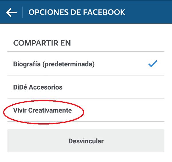 Una vez que permitas que Instagram administre tus páginas de fans, entonces deberás ir nuevamente a perfil / los tres puntos / cuentas enlazadas / Facebook. Aquí podrás ver las opciones de publicación en esta red social, tu biografía aparecerá como predeterminada para cambiarlo simplemente selecciona el nombre de la página que administras y, a partir de este momento, cada vez que publiques en Instagram podrás hacerlo también aquí.