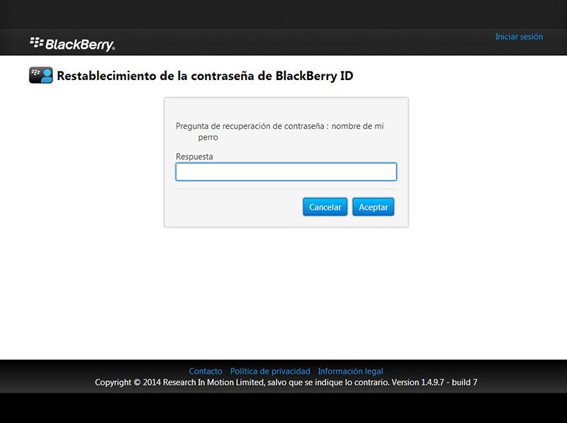 En este momento, aparecerá tu "Pregunta de recuperación de contraseña" que elegiste al hacer el registro en Blackberry. De este modo, deberás escribir la respuesta; si no la recuerdas, ve probando posibles opciones.