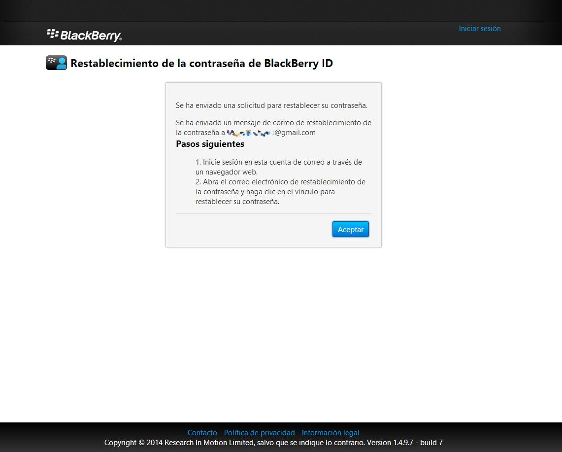 En este momento, ya habrás recuperado tu contraseña de Blackberry ID y podrás iniciar sesión con tu cuenta de correo electrónico y el nuevo password escogido.