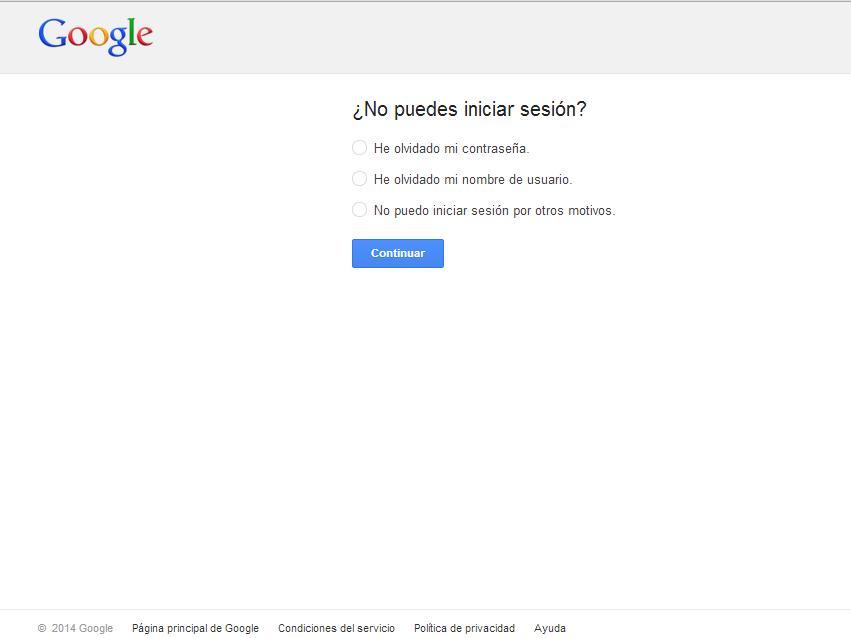 De este modo, accederás al servicio de recuperación de cuentas de Google a través del que intentarás acceder a tu cuenta de Google.