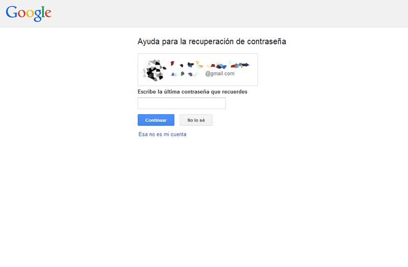 Seguidamente, te pedirá que escribas la última contraseña que recuerdes de dicha cuenta de Google. En caso de que no te acuerdes de ninguna, también encontrarás el botón "No lo sé".
