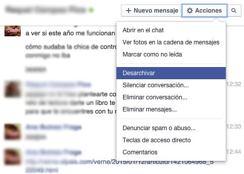 Haz click sobre la que quieras recuperar y después, encima de la conversación, vete a Acciones>Desarchivar. ¡La conversación volverá a tu carpeta de entrada!