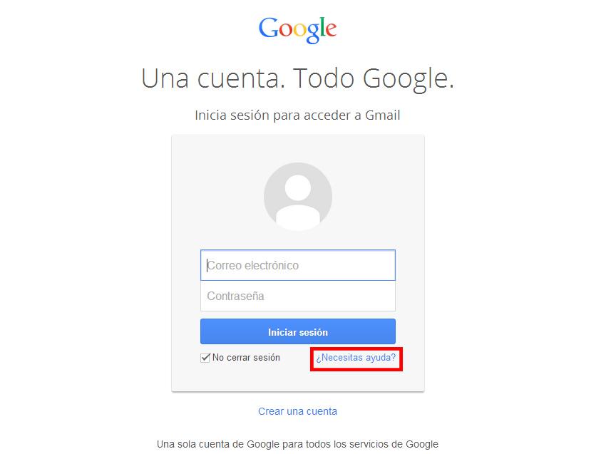 Lo primero que deberás hacer será dirigirte al portal de acceso de Gmail a través de http://mail.google.com y una vez allí deberás hacer clic en la opción "¿Necesitas ayuda?" para recuperar tu correo electrónico.