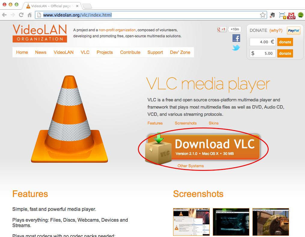 Pincha en el botón grande naranja en el que pone "Download VLC".