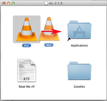 Arrastra el icono naranja de VLC a la carpeta de Aplicaciones.