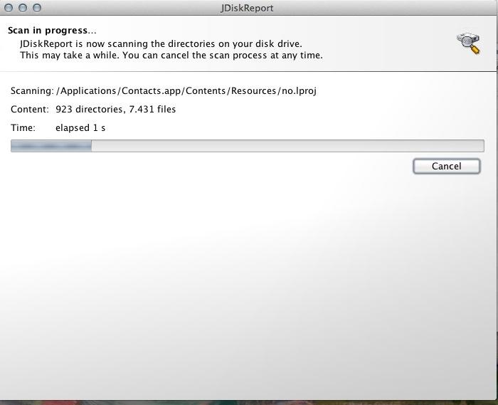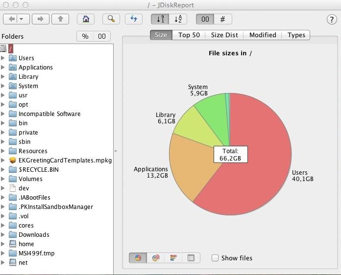 Una vez elegida la parte de tu ordenador de la que quieres saber qué carpetas ocupan más espacio, comienza el escaneo. En nuestro caso, hemos escogido el disco duro entero. No ha tardado demasiado tiempo, unos dos minutos para realizar el informe de un espacio de algo más de 66 gigas.