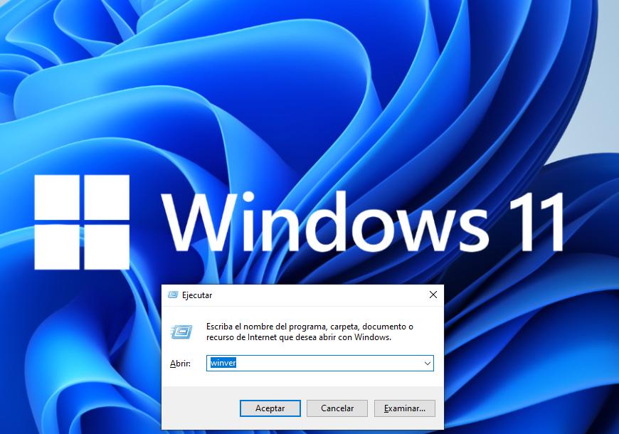 - En el recuadro abierto, escribe winver y haz clic en Aceptar.
