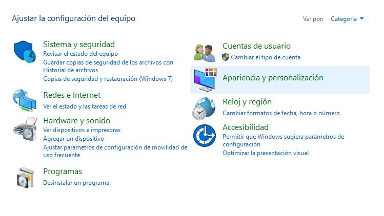 Pues bien, si te preguntas cómo saber qué versión de Windows tengo instalado, el procedimiento que te proporcionamos es sencillo. El primer paso es abrir el menú de inicio y, en el buscador habilitado, escribir Panel de control para que puedas acceder rápidamente a él. Después verás en pantalla una opción para ajustar la configuración del equipo según categorías o iconos. En este caso, selecciona iconos grandes o pequeños para observarlos todos de forma sencilla.