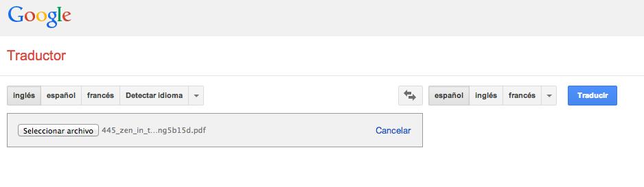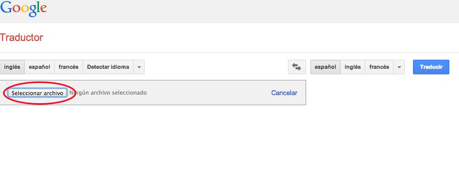 Haz clic en "seleccionar archivo" y escoge el PDF que quieres traducir.