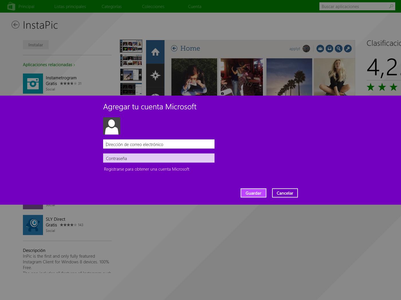 En este momento, ya puedes empezar a usar InstaPic para poder acceder a tu Instagram desde tu ordenador con sistema operativo Windows 8. Será necesario, obviamente, que dispongas de cuenta de Instagram; por lo que si no es así, puedes crearla también desde aquí.