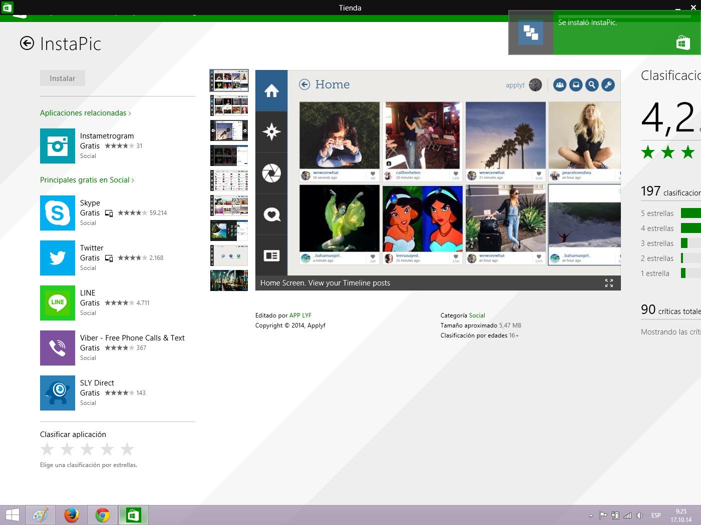 Para poder usar Instagram en tu Windows 8, será necesario que instales la aplicación: InstaPic, para ello puedes buscarla a través de la web de Microsoft o directamente en la Tienda de Windows. Una vez que la hayas encontrado, deberás hacer clic en el botón "Instalar" que encontrarás en la parte superior izquierda.