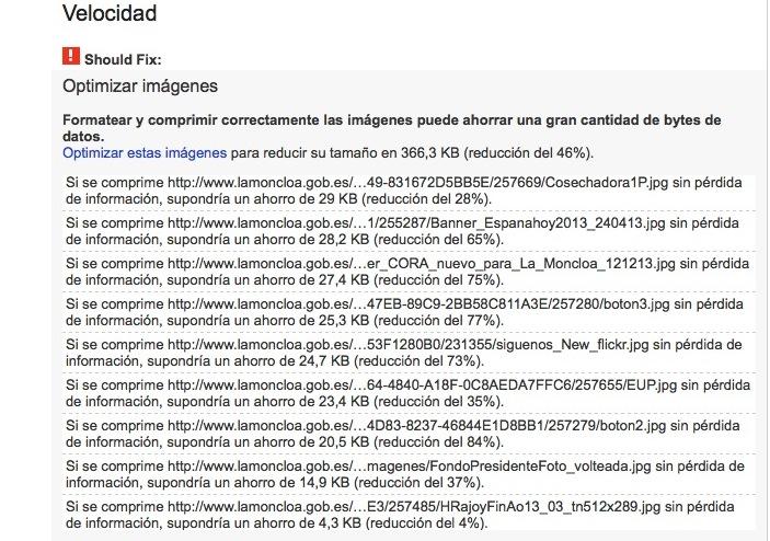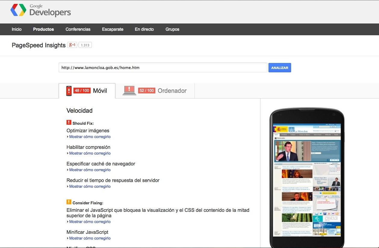 Si introduces, por ejemplo, la url del Gobierno de España verás que la valoración tanto para la versión móvil como para la de ordenador es bastante baja, ya que en ninguno de los casos supera una puntuación de 52 sobre un máximo de 100.