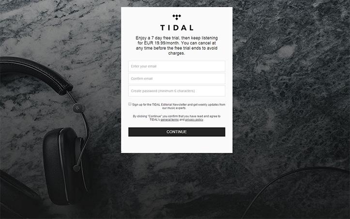 Hacer log in a través de las redes sociales siempre será más rápida y sencilla, aunque previamente deberemos autorizar que Tidal tenga permiso para realizar determinadas acciones. Si optas por darte de alta directamente, recibirás en tu correo electrónico un e-mail de confirmación y deberás presionar en el link que se incluye para activar tu cuenta de Tidal.