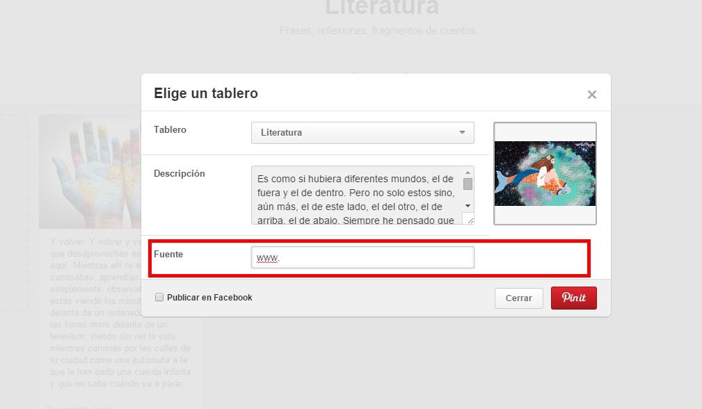 Debes saber que cuando añades el link de tu web, el usuario puede acceder a ella por tres vías distintas: pinchando directamente en la foto, clickando en el botón de "Ir a sitio" o pinchando directamente en el enlace de tu web. Por lo tanto, como ves, desde Pinterest se puede generar tráfico a tu web de 3 maneras distintas con cada publicación.