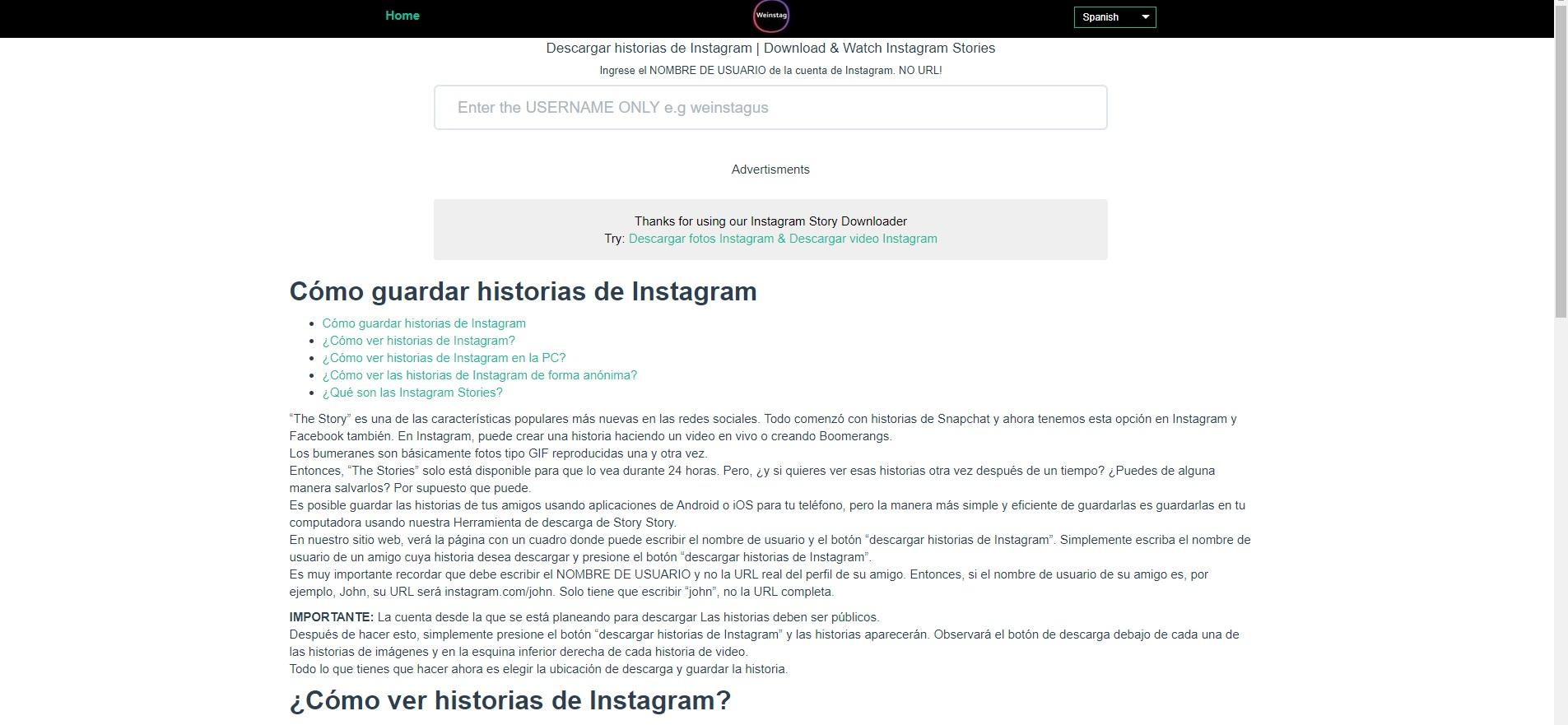 - En tu navegador de confianza, ve a la web de Insta Stories.