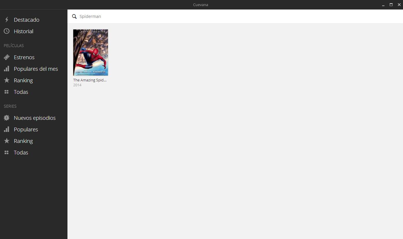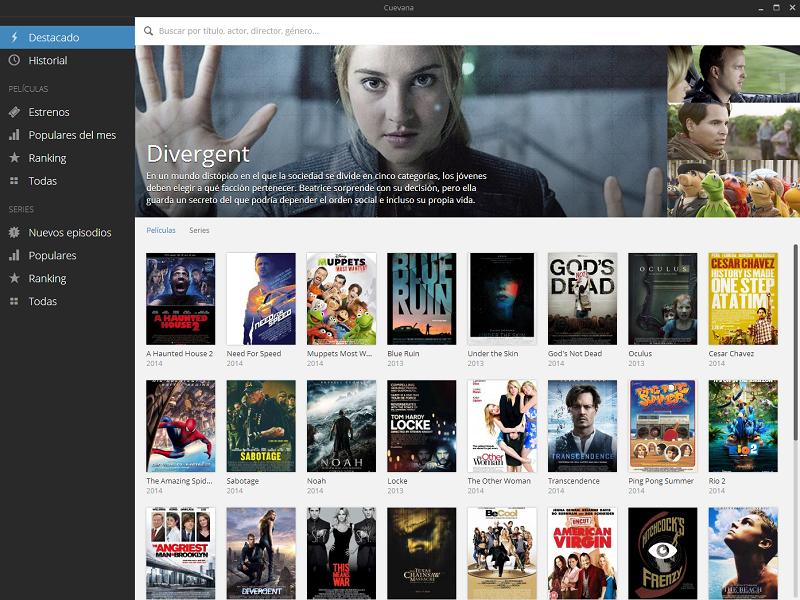 En este momento, ya podrás acceder a la aplicación a través del icono en el escritorio o los menús de programas. Será el momento de buscar las series o películas que te interesen; podrás ayudarte del menú izquierdo para encontrar películas populares y demás destacadas.