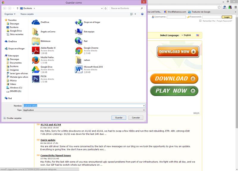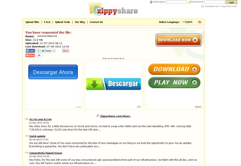 Hecho esto, te aparecerá el servidor de descarga a través del que iniciarás la bajada de la aplicación de Cuevana, en este caso Zippyshare.com. Deberás hacer clic sobre el botón "Download now" de la parte superior derecha y empezará el proceso de descarga.