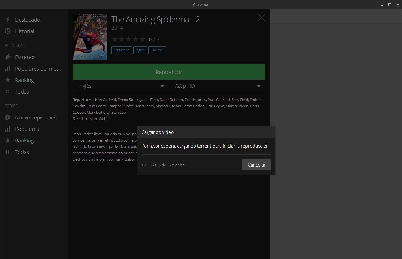 En este momento, se iniciará el proceso de carga de la película a través de clientes torrent, como también funcionan otros aplicativos del tipo uTorrent o de descarga P2P. El tiempo de espera dependerá de diversos factores como la velocidad de tu conexión o el número de clientes disponibles que disponen de estos archivos.