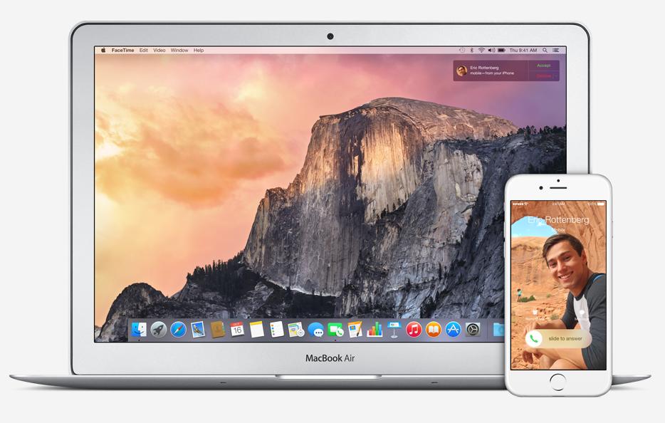 Otra de las grandes novedades de OS X Yosemite es el esfuerzo que ha puesto Apple en que funcione de forma fluida con otros dispositivos, es decir, con iOS. Así, se podrán hacer y recibir llamadas del iPhone en el Mac, lo mismo con los SMS (si tienes iOS 8), y pasar cosas a medias (un documento, un mail, etc.) de un dispositivo a otro si están cerca (Handoff). Aparece también Instant Hotspot, la posibilidad de que el iPhone comparta su conexión con el Mac (activándolo en el Mac), y AirDrop, que permite compartir de forma sencilla archivos entre dispositivos.