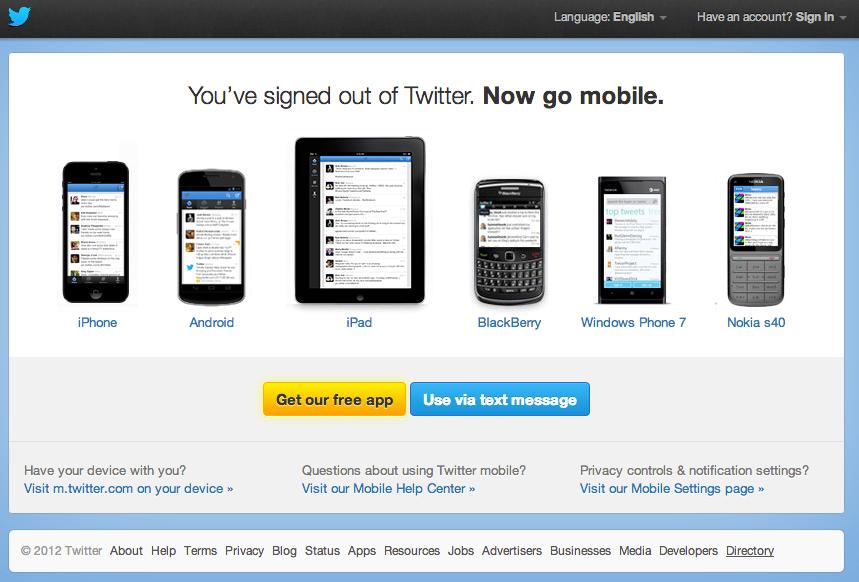 Twitter no ha anunciado formalmente su nuevo directorio, sino que con mucho sigilo sacó esta funcionalidad con un link en la zona inferior de la página principal de Twitter. Está claro que es una funcionalidad orientada a buscadores porque este link sólo aparece en la home cuando el usuario no está logado.
